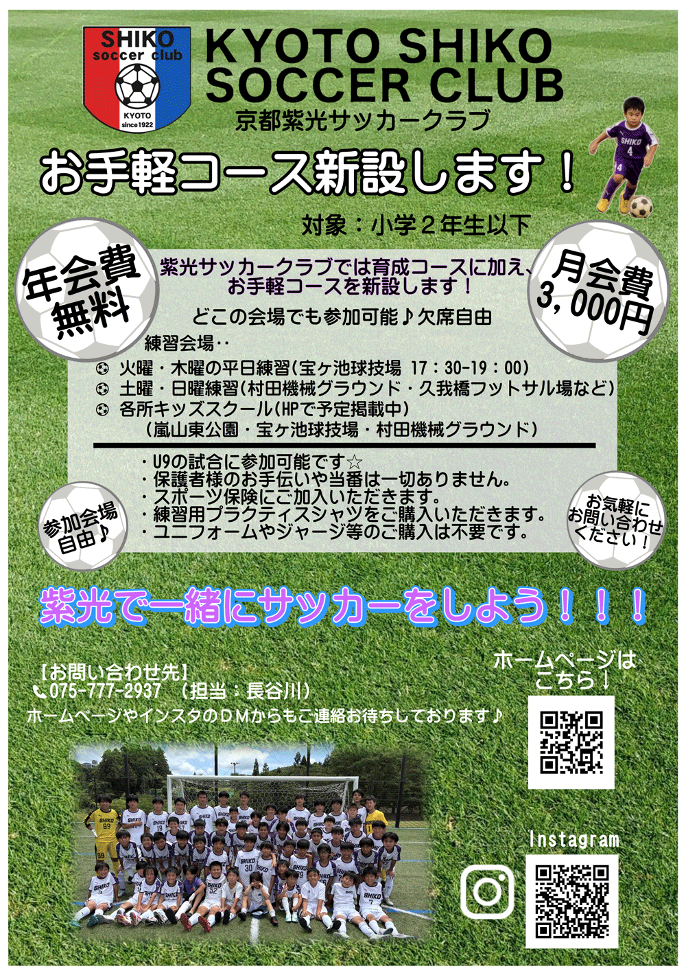 ジュニアユース・ジュニア・シニア・女子サッカーそして紫光サッカーキッズまで幅広い世代のメンバーが京都紫光サッカークラブでサッカーを楽しんでいます。