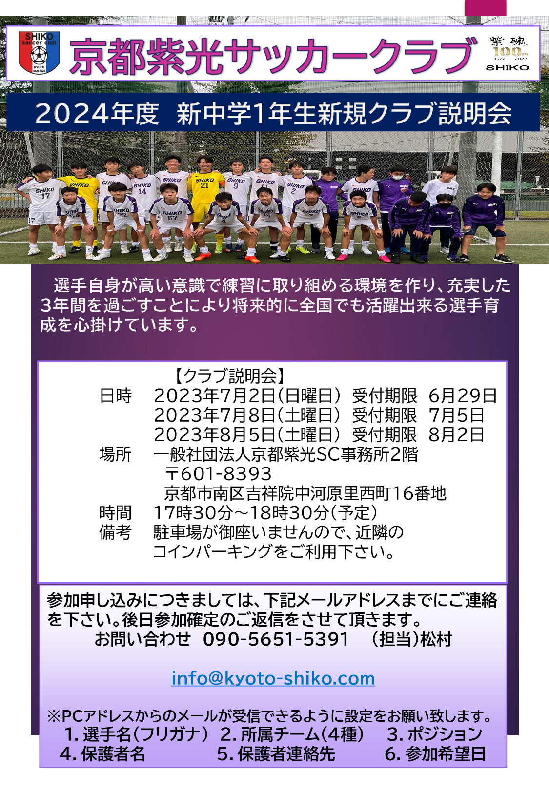 京都紫光サッカークラブのオフィシャルサイトです。